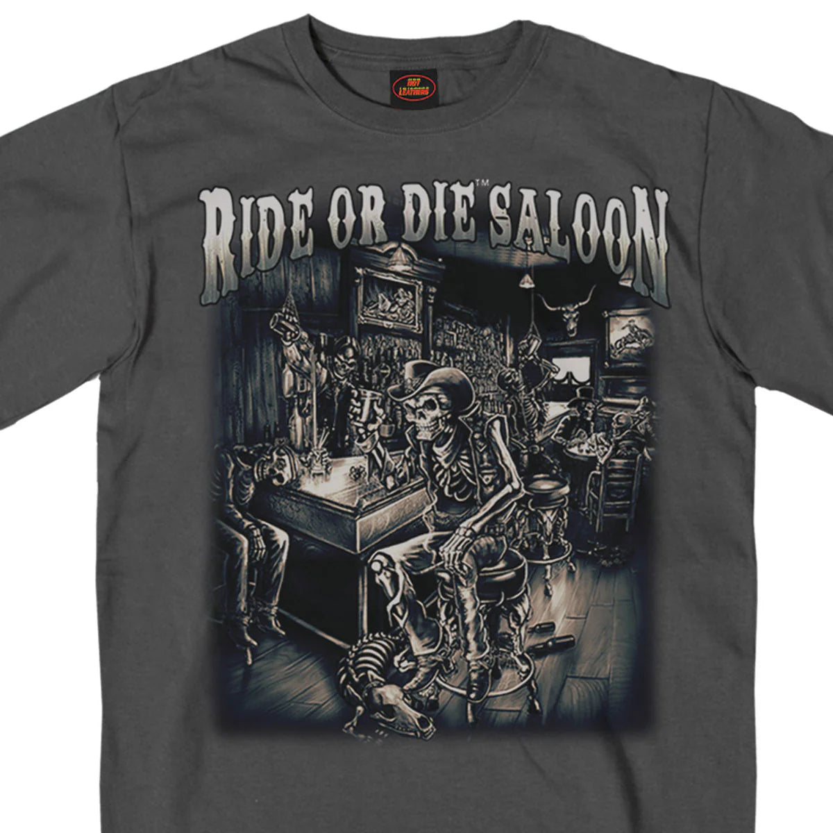 Hot Leathers GMS1126 Men’s ‘Ride or Die Saloon’ Charcoal T-Shirt